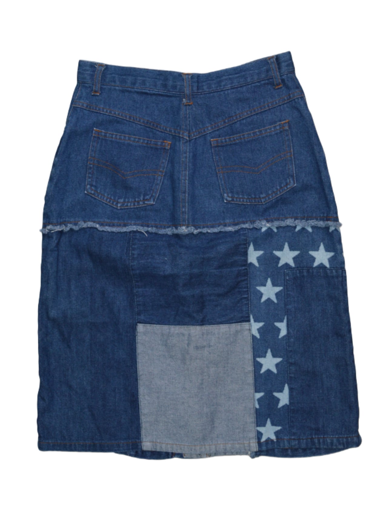 【USED】Star Patchwork Button-Front Denim Skirt