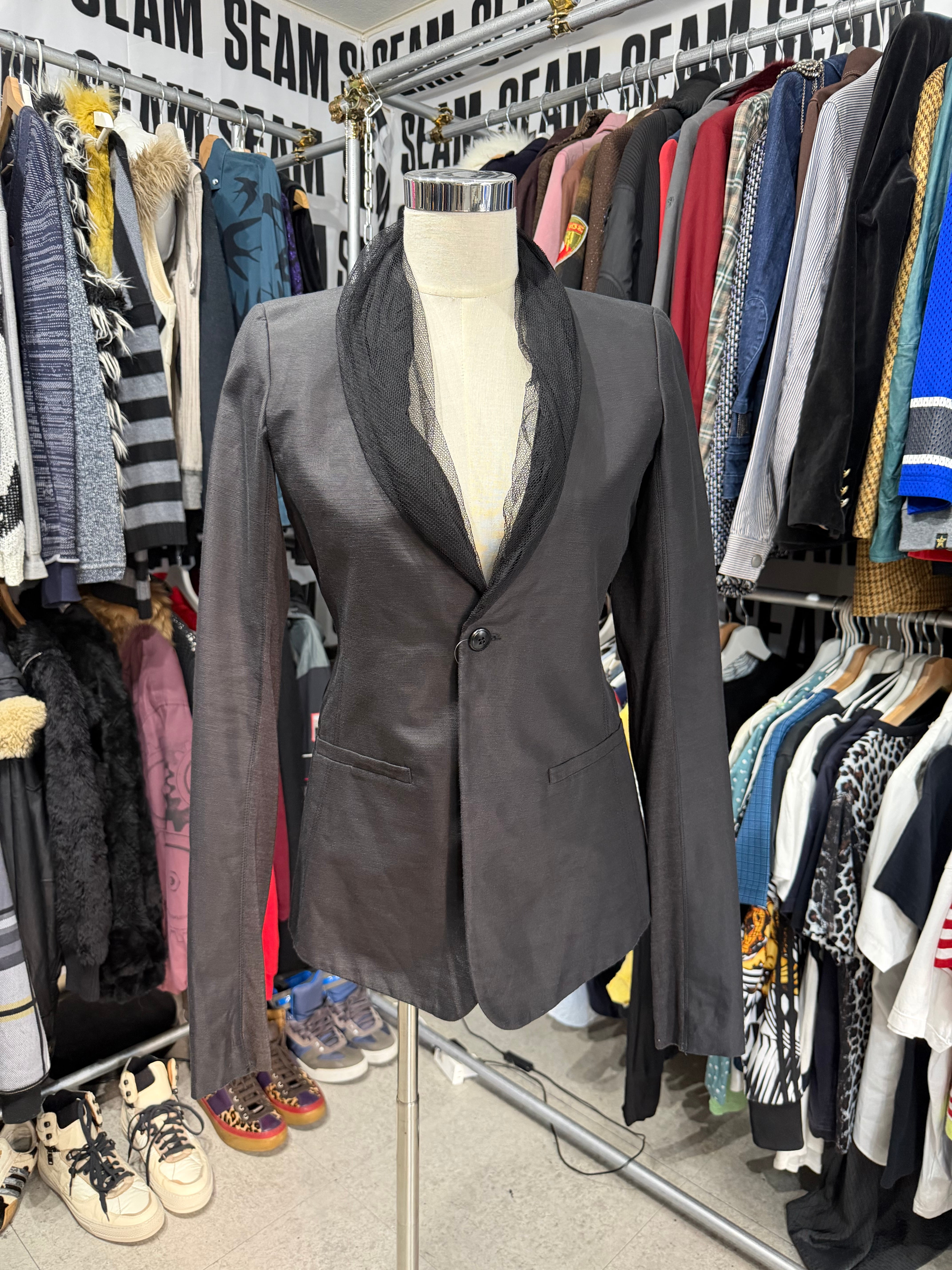 【Rick Owens】Mesh Collar Tailored Jacket